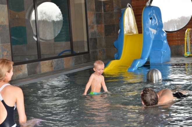 Dla najmłodszych gości przygotowaliśmy specjalny basen – brodzik o powierzchni 28,75 m², głębokości od 15 do 30 cm i temperaturze wody 32 – 34 °C oraz dedykowane atrakcje: