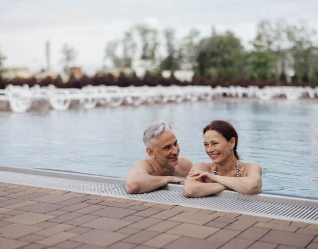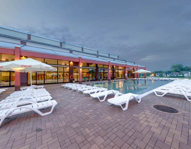 Baseny zewnętrzne dostępne w sezonie letnim w zależności od warunków atmosferycznych i temperatury zewnętrznej. Od 29.09.2025 baseny zewnętrzne ZAMKNIĘTE